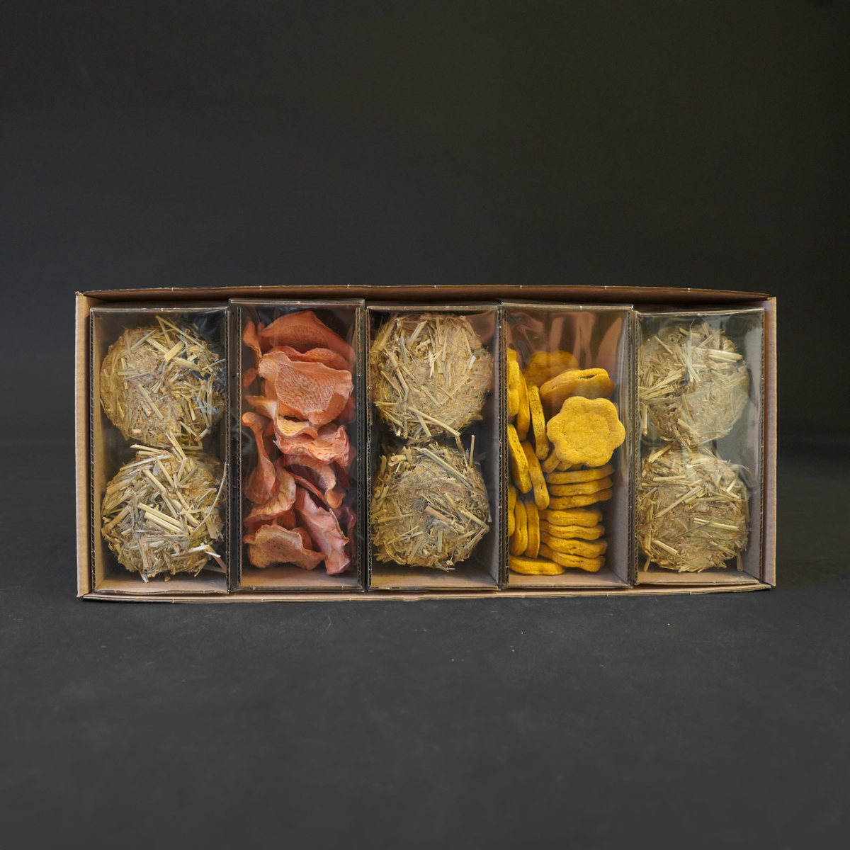 De Amber box is een heerlijke snackbox voor jouw cavia! Gevuld met 4 natuurlijke snacks uit onze eigen keuken. Met o.a. wortel hooikoeken, gedroogde wortel en wortelkoekjes.