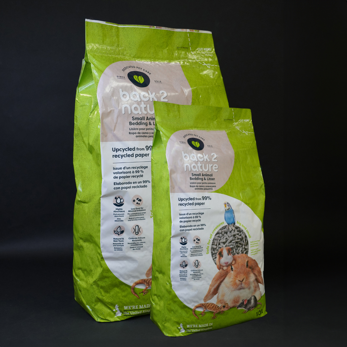 De papierkorrels van Back 2 Nature hebben een hoge vochtopname en voorkomen daarmee nare geurtjes in het verblijf of toilet van jouw cavia. Het is een stofvrije bodembedekker, gemaakt van gerecycled papier.