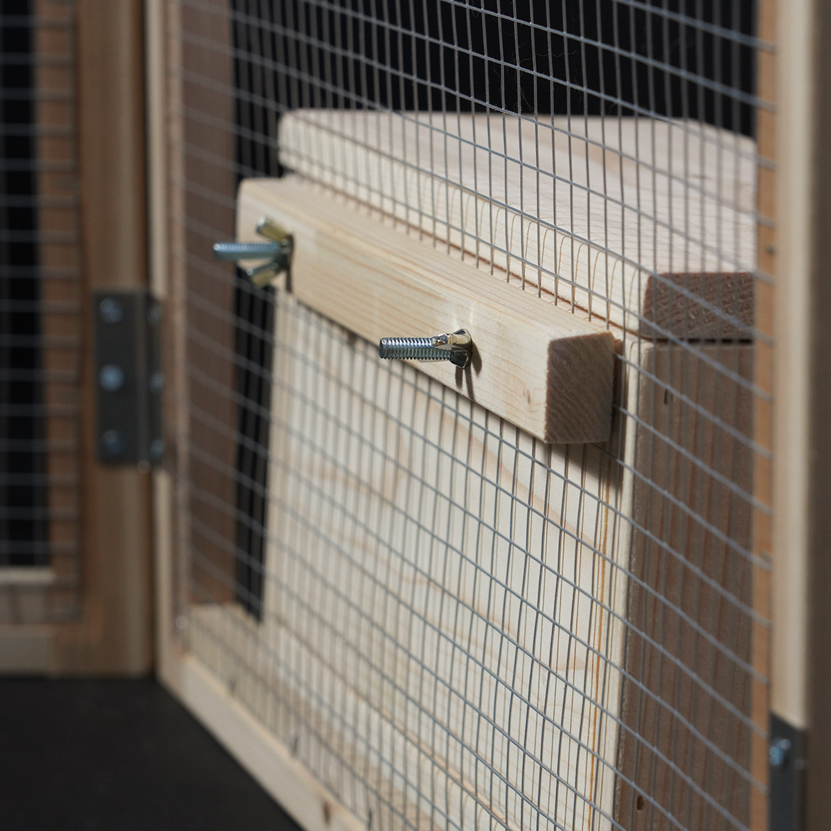 Hooiruif Loki wordt gemaakt met de hand in onze eigen werkplaats. We gebruiken alleen materialen die veilig zijn voor jouw cavia, zoals onbewerkt vuren. Ook kiezen wij er bewust voor om geen knaagstrips te plaatsen op onze producten, omdat de coating in het ijzer/aluminium gifitig is voor cavia’s.