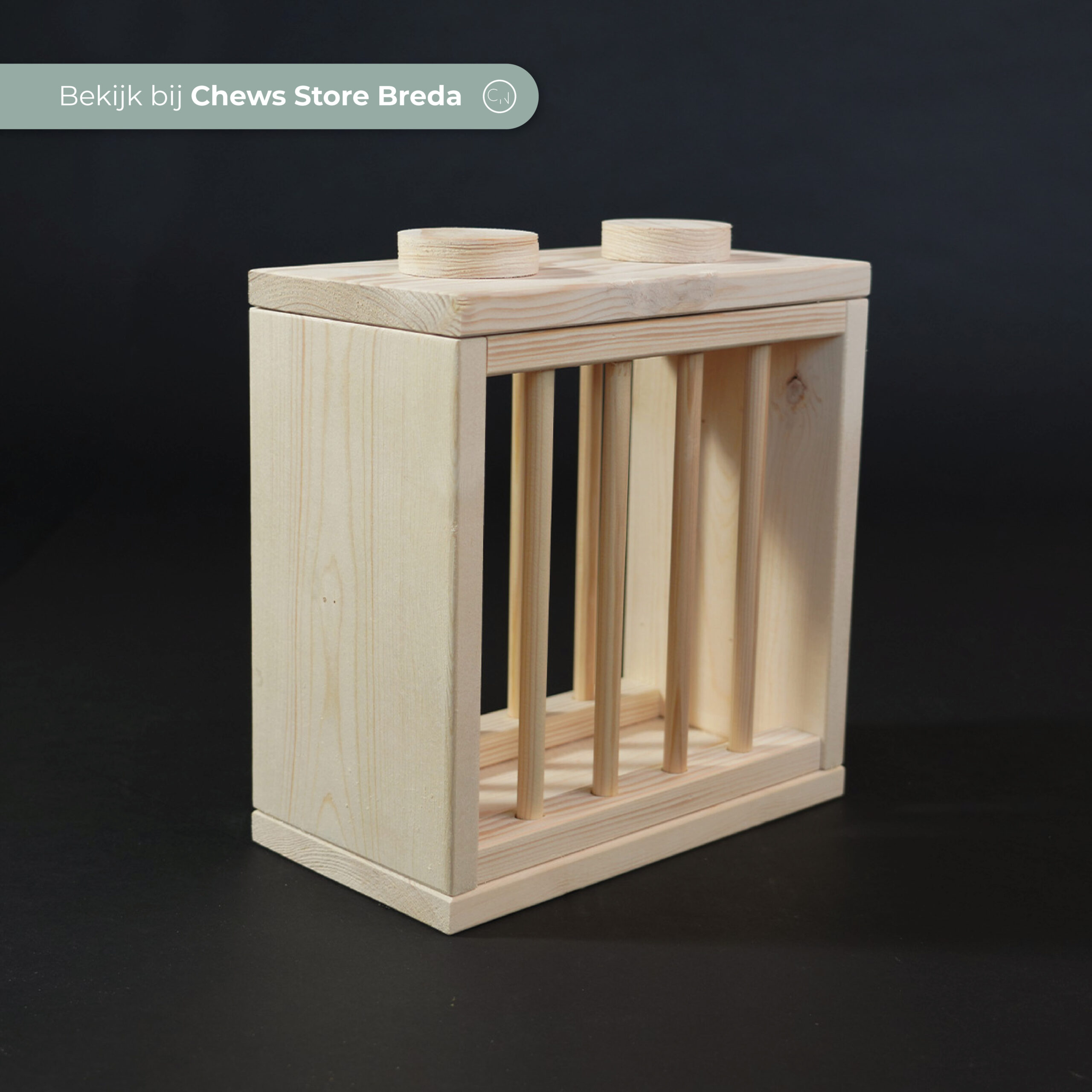 Deze hooiruif wordt met de hand gemaakt in onze werkplaats. Hierdoor is elk item uniek en kunnen er minimale afwijkingen zijn. Er is gebruikt gemaakt van onbehandeld vurenhout en daarmee veilig voor jouw cavia.