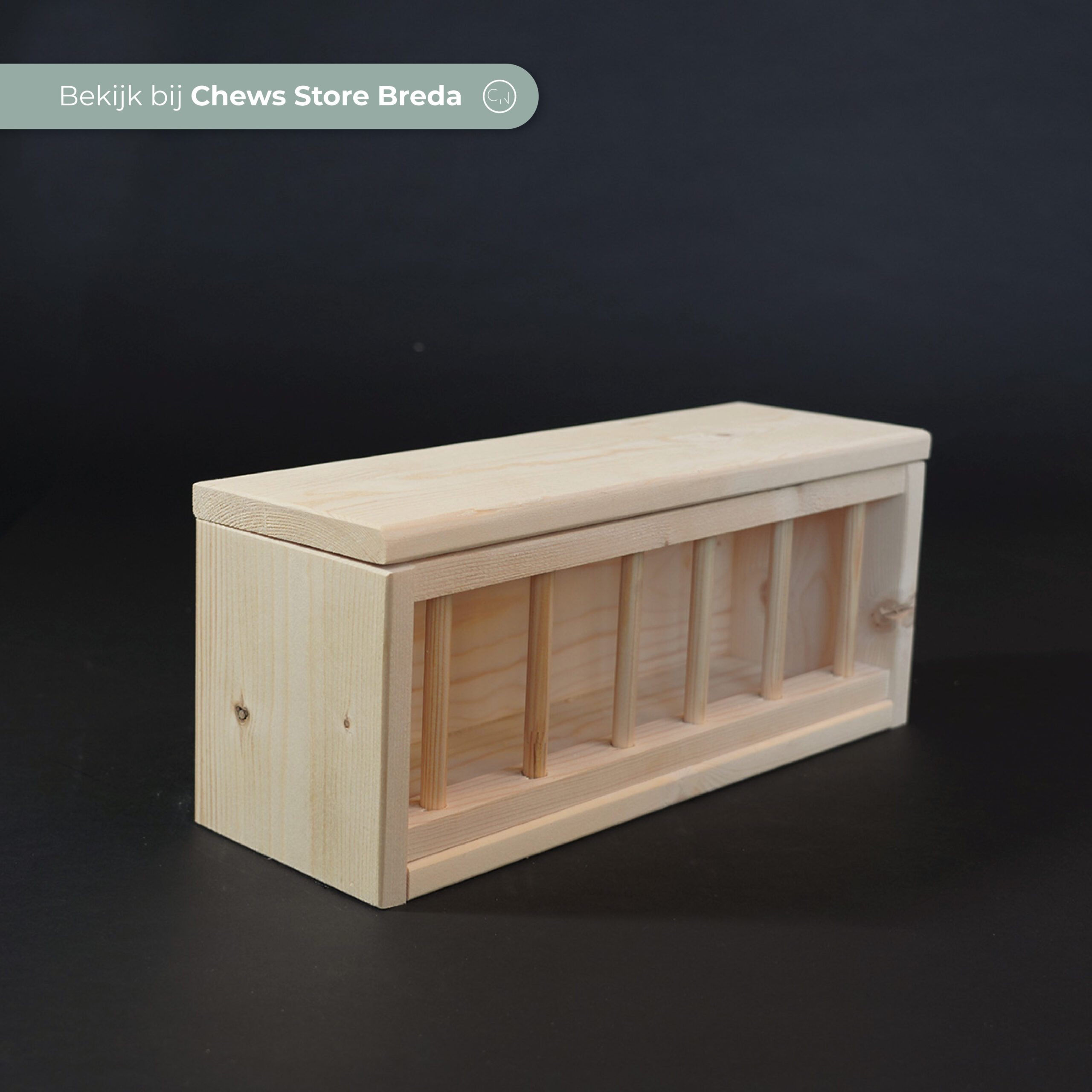Dit hooiruif is gemaakt in onze eigen werkplaats met de hand. Hang dit hooiruif in het verblijf van jouw cavia, zodat er altijd onbeperkt hooi aanwezig is. En zo blijft het hooi ook langer fris en schoon! Het onbewerkte hout is veilig voor cavia’s.