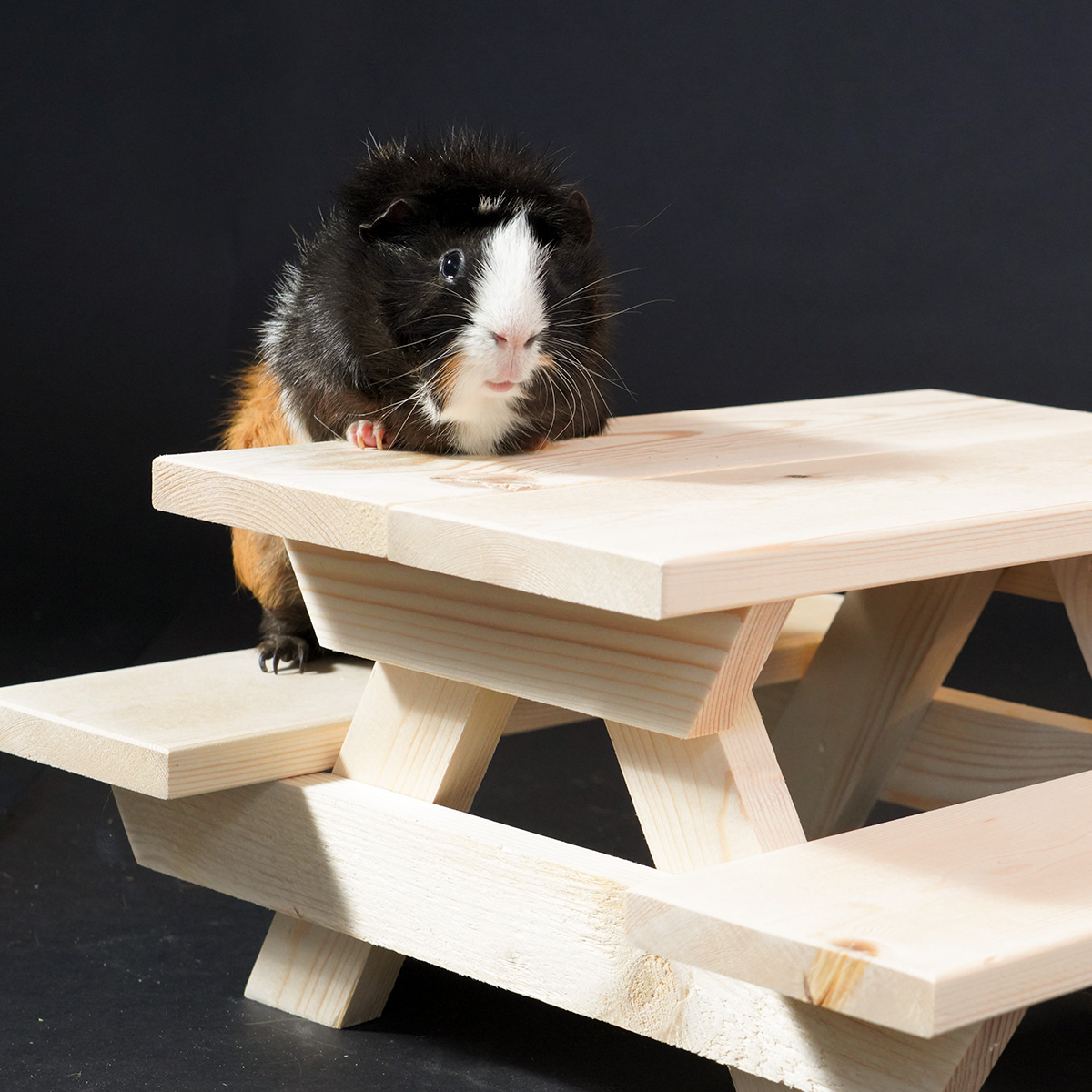 Geef jouw cavia een heerlijke en speelse snackplek met deze vrolijke picknicktafel! Verkrijgbaar in diverse formaten. Deze tafel zorgt niet alleen voor een fijne plek om lekkere hapjes aan te bieden, maar vormt ook een leuke toevoeging aan hun verblijf.