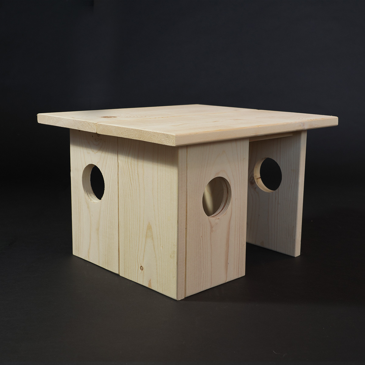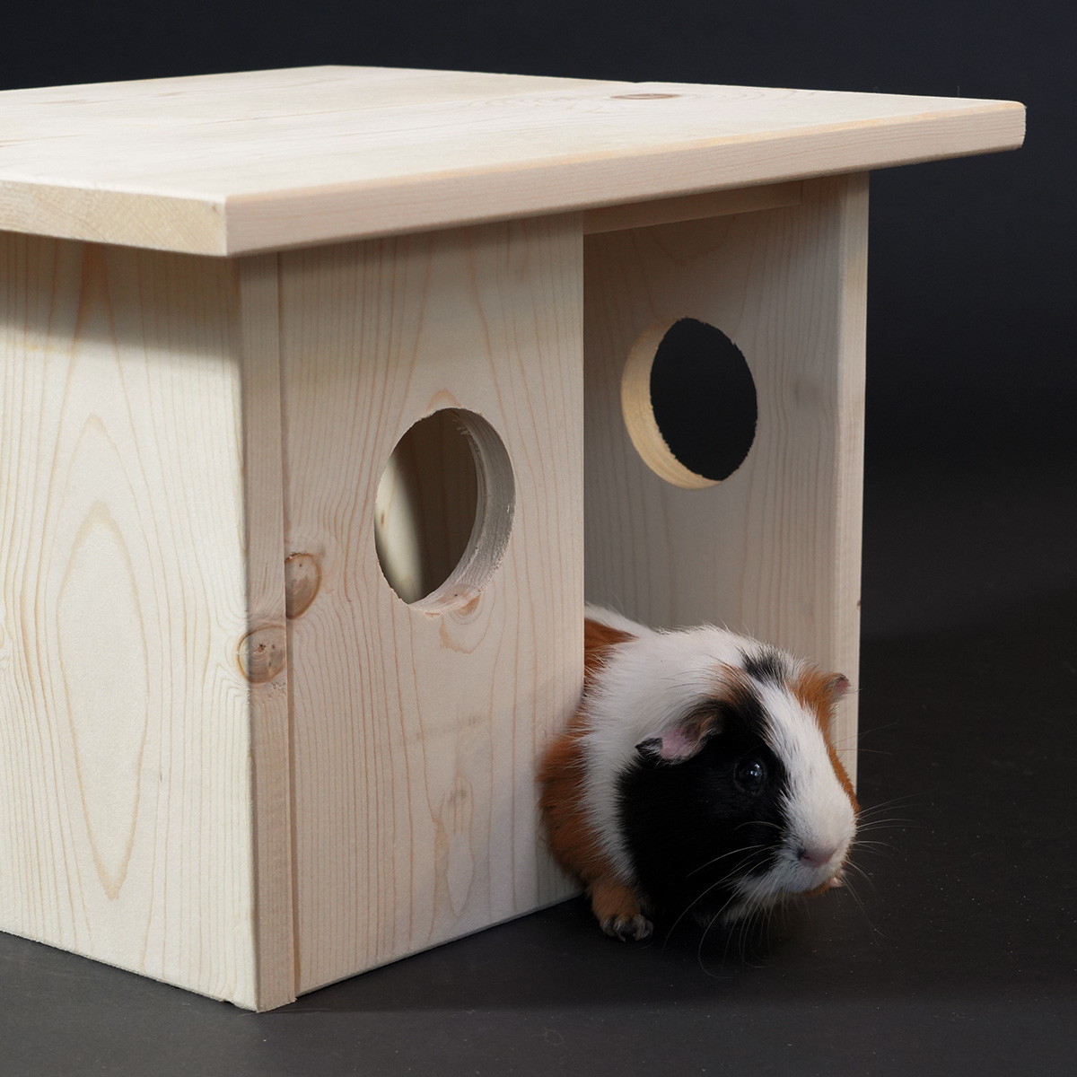Schuilplek Syn is een handgemaakt, houten schuilplek voor jouw cavia! Door het strakke, neutrale uiterlijk past deze mooie schuilplek perfect in het verblijf van jouw cavia. Deze schuilplek heeft 2 openingen, waardoor veel cavia’s dit huis prettiger ervaren als een schuilplek met 1 opening. Het onbewerkte hout is veilig voor jouw knager.