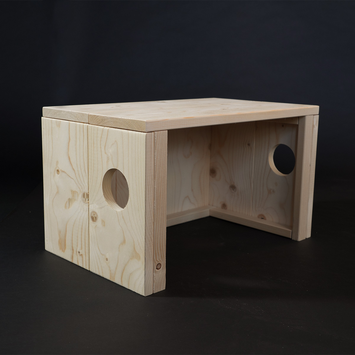 Schuilschuur Heimdall is een handgemaakt houten schuilplek voor jouw cavia! Door het strakke, neutrale uiterlijk past deze mooie schuilplek perfect in het verblijf van jouw cavia. Het onbewerkte hout is veilig voor jouw knager.