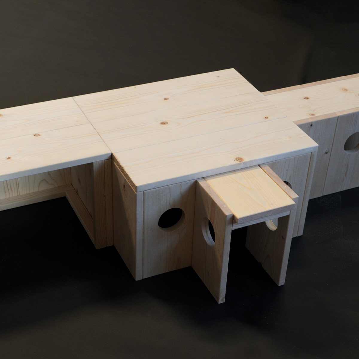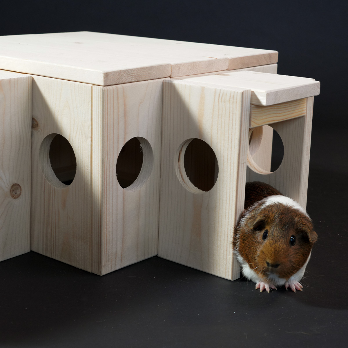 Tunnel Frigg – M is een handgemaakt houten schuilplek voor jouw cavia! Door het strakke, neutrale uiterlijk past deze mooie tunnel perfect in het verblijf van jouw cavia. Het onbewerkte hout is veilig voor jouw knager.