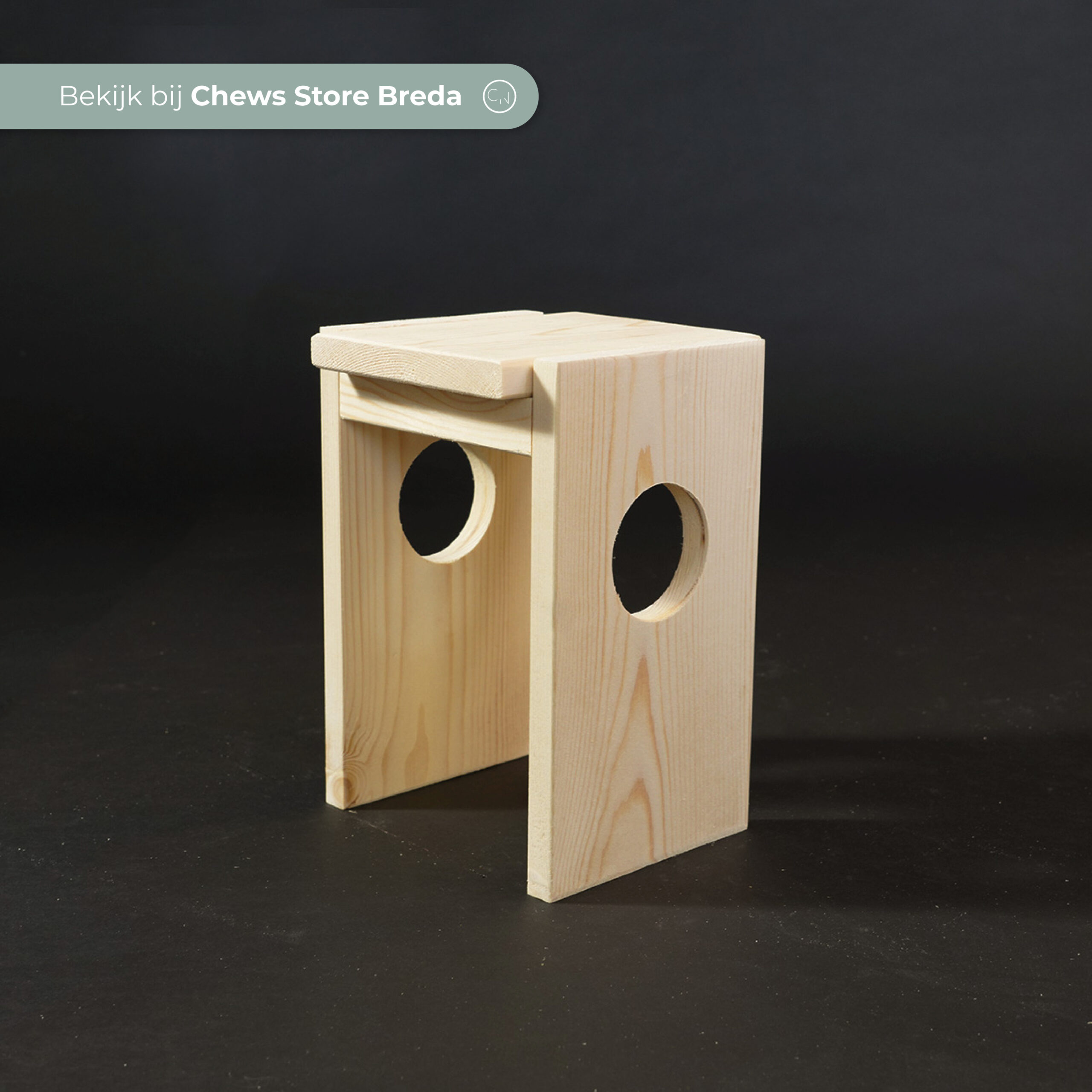Tunnel Heimdall – S is een handgemaakt houten schuilplek voor jouw cavia! Door het strakke, neutrale uiterlijk past deze mooie tunnel perfect in het verblijf van jouw cavia. Het onbewerkte hout is veilig voor jouw knager.