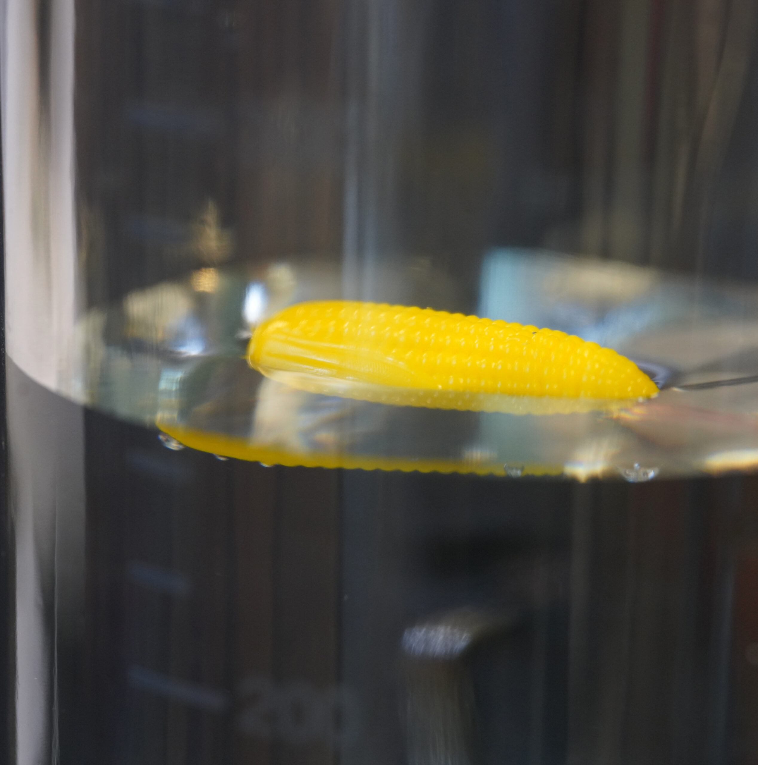 Het gele maïskolfje geeft aan hoeveel water er nog in de fles zit. Zo weet je wanneer je de fles weer moet vullen!
