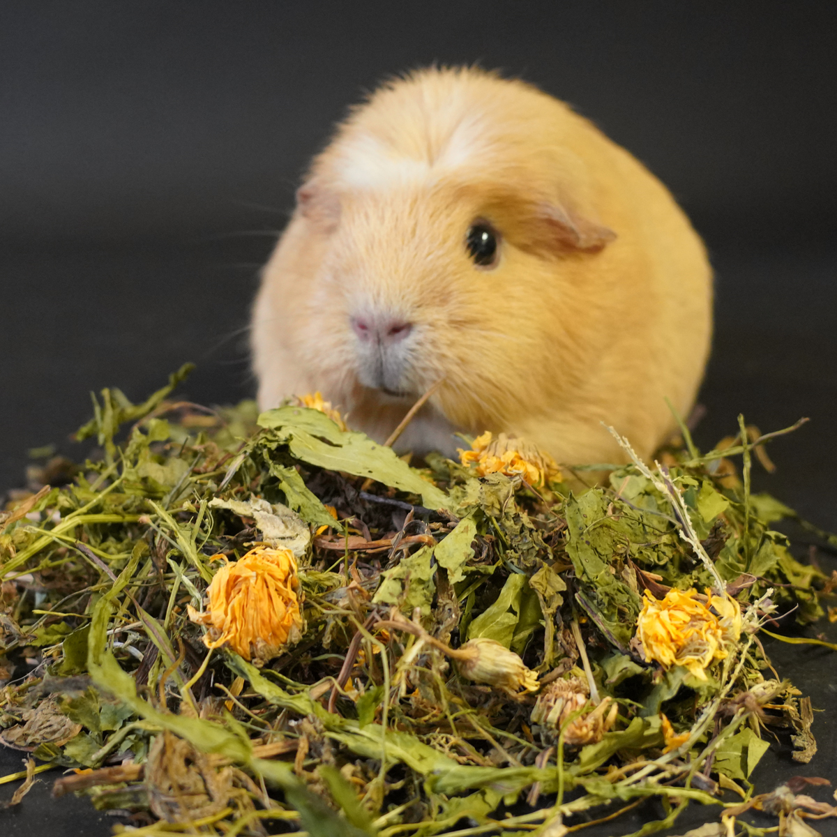 Paardenbloem zit boordevol vitamines, mineralen en essentiële sporenelementen. Dankzij het hoge gehalte aan ruwe vezels ondersteunt het een gezonde en optimale spijsvertering bij jouw cavia.
