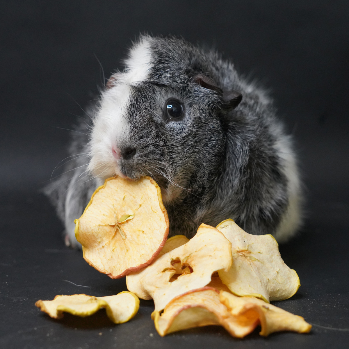 Deze rode appelschijven zijn 100% natuurlijk en een gezond tussendoortje voor jouw cavia. Gedroogd in onze eigen keuken.