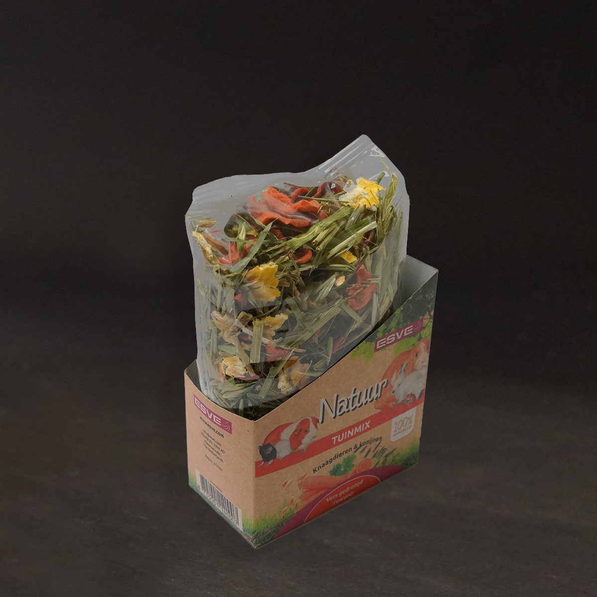 Tuinmix is een verantwoorde toevoeging aan het dagelijkse dieet van jouw cavia! Door het hoge gehalte aan ruwe vezels draagt deze kruidenmix bij aan een optimale spijsvertering.