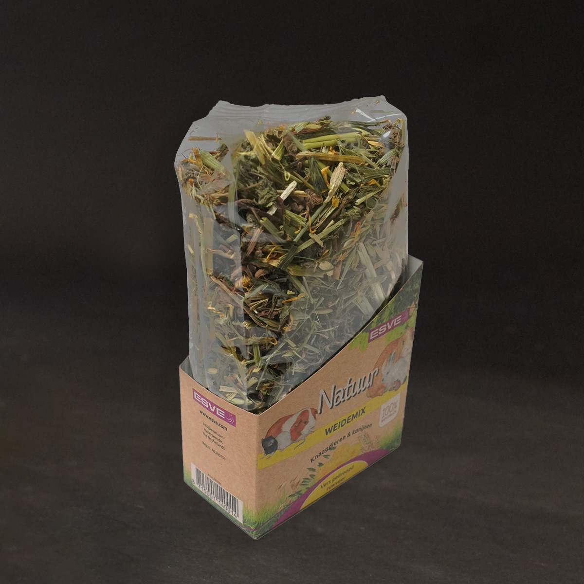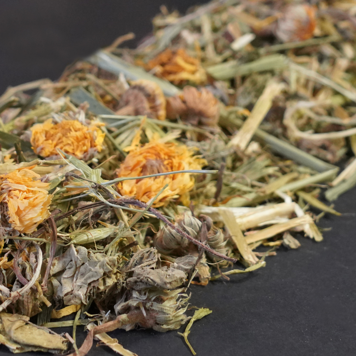Deze weidemix is een verantwoorde toevoeging aan het dagelijkse dieet van jouw cavia! Dankzij het hoge gehalte aan ruwe vezels draagt deze kruidenmix bij aan een optimale spijsvertering.