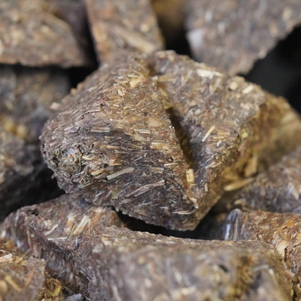 aanplant van blijvend grasland, speltvolkorenmeel, haverzemelen, appeltrester, lijnzaadcake, echinaceabladeren (1%), bloempollen (0,5%)
