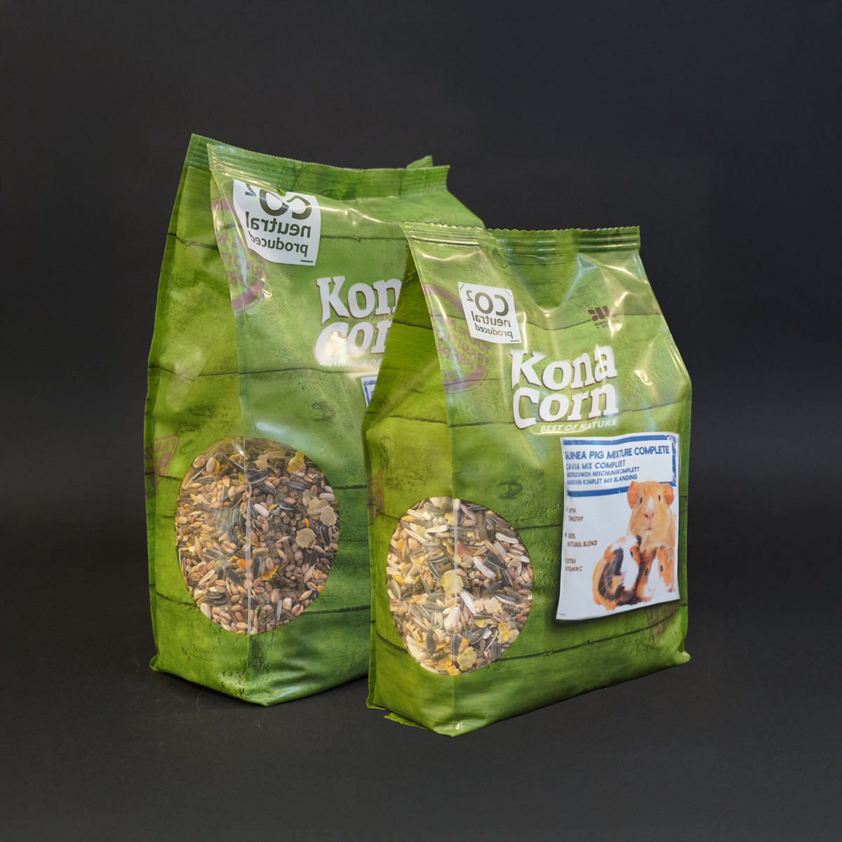 KonaCorn cavia mix is een natuurlijke, complete voeding voor jouw cavia. Het zijn smakelijke brokjes met essentiële vitaminen en mineralen, naast brokjes met Timothy hooi. Dit draagt bij aan de darmflora door het hoge gehalte aan ruwe vezels.