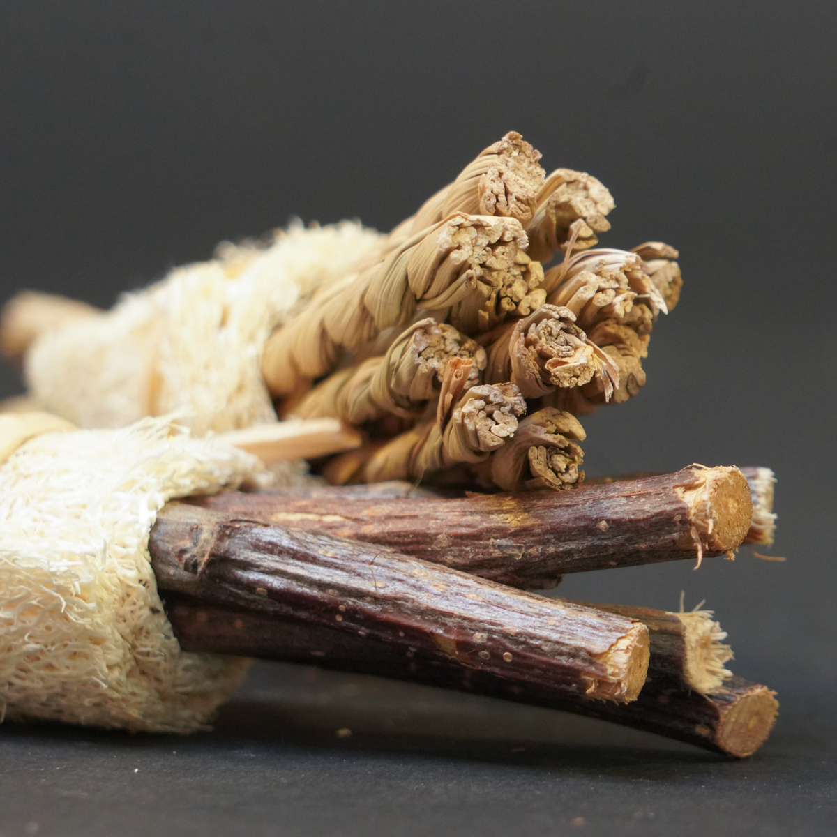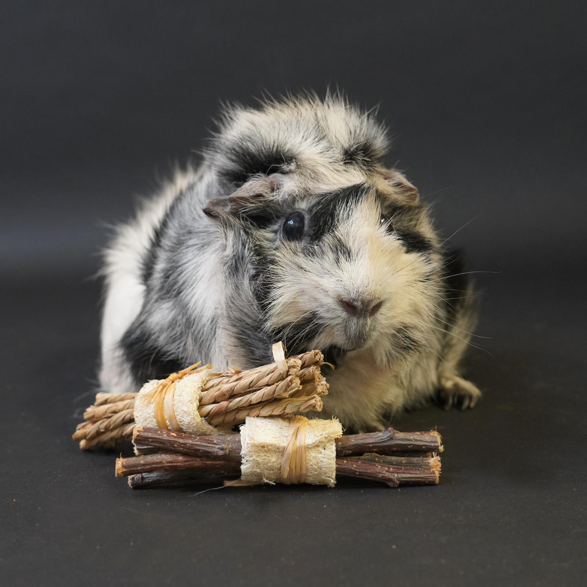 De Chew Sticks zijn gemaakt van 100% natuurlijke materialen zoals loofah, zeegras en schorshout, helemaal veilig voor jouw cavia.