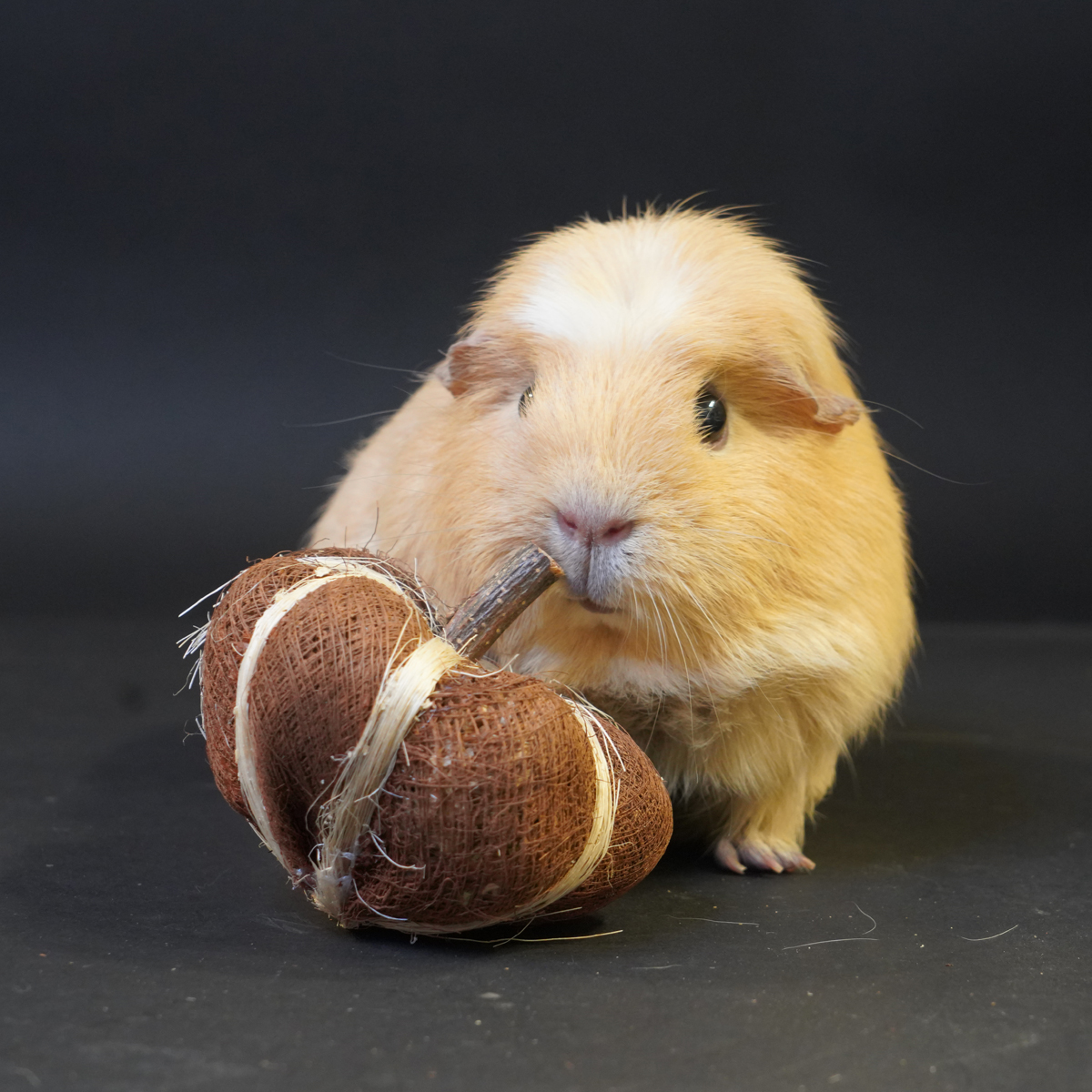 De Natural Pumpkin Toy is een leuk en veilig knaagspeeltje, gemaakt van kokosvezels, sisal en schorshout. Volledig natuurlijk en dus ideaal voor jouw cavia.