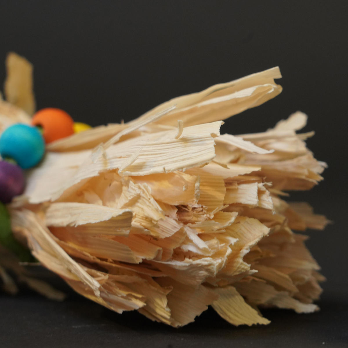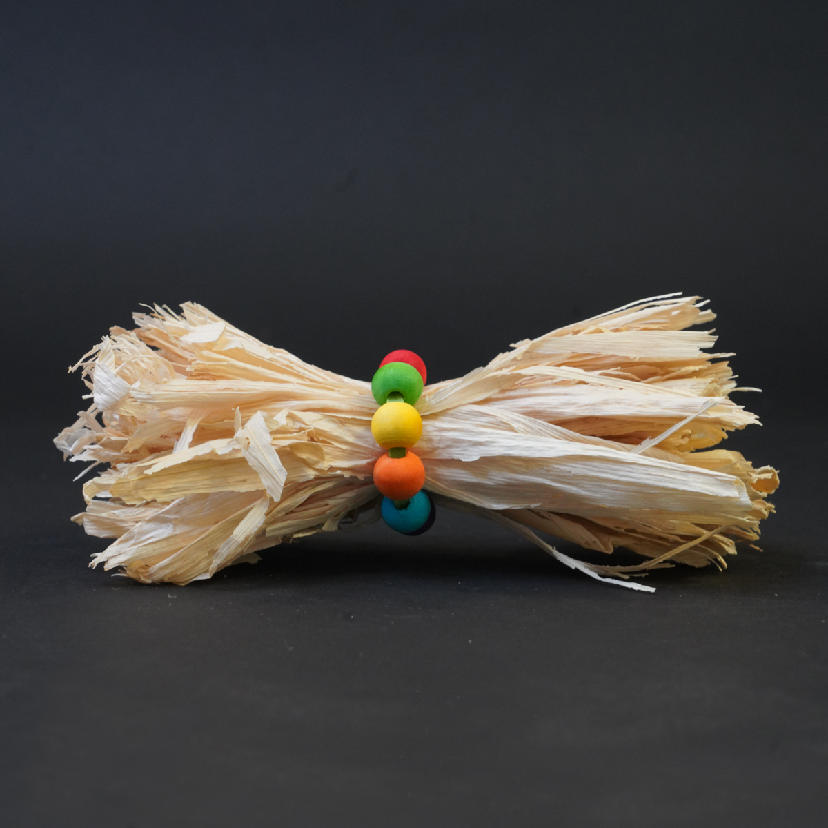 De Crispy Corn Toy is een vrolijk speeltje gemaakt van 100% natuurlijke materialen, zoals maïskolfblad en hout.