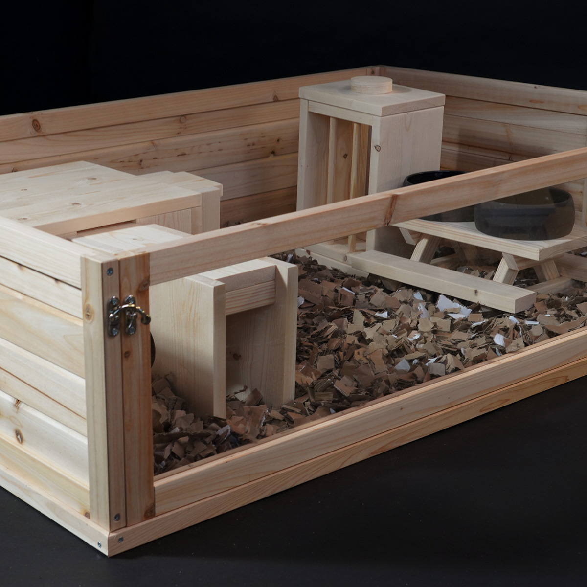 Open home wood S is een natuurlijk, houten verblijf, voor de dagelijkse bezigheden van jouw cavia. Doordat cavia’s niet goed zijn in springen en klimmen, hoeft het verblijf niet afgesloten te zijn. Hierdoor kun je makkelijk contact maken met je cavia en heb je niet het opgesloten gevoel.