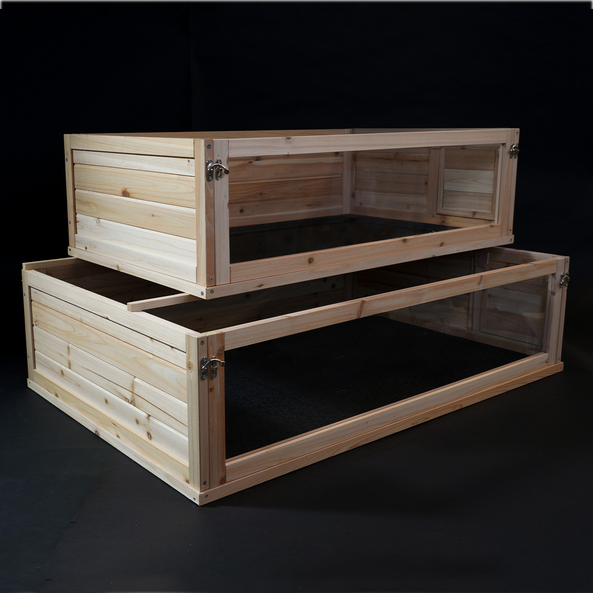 De houten bak is voorzien van een kunststof plaat, die je kunt verwijderen bij het schoonmaken van het verblijf, zodat de houten gedeeltes langer schoon en mooi blijven.