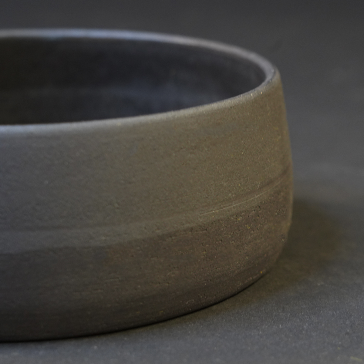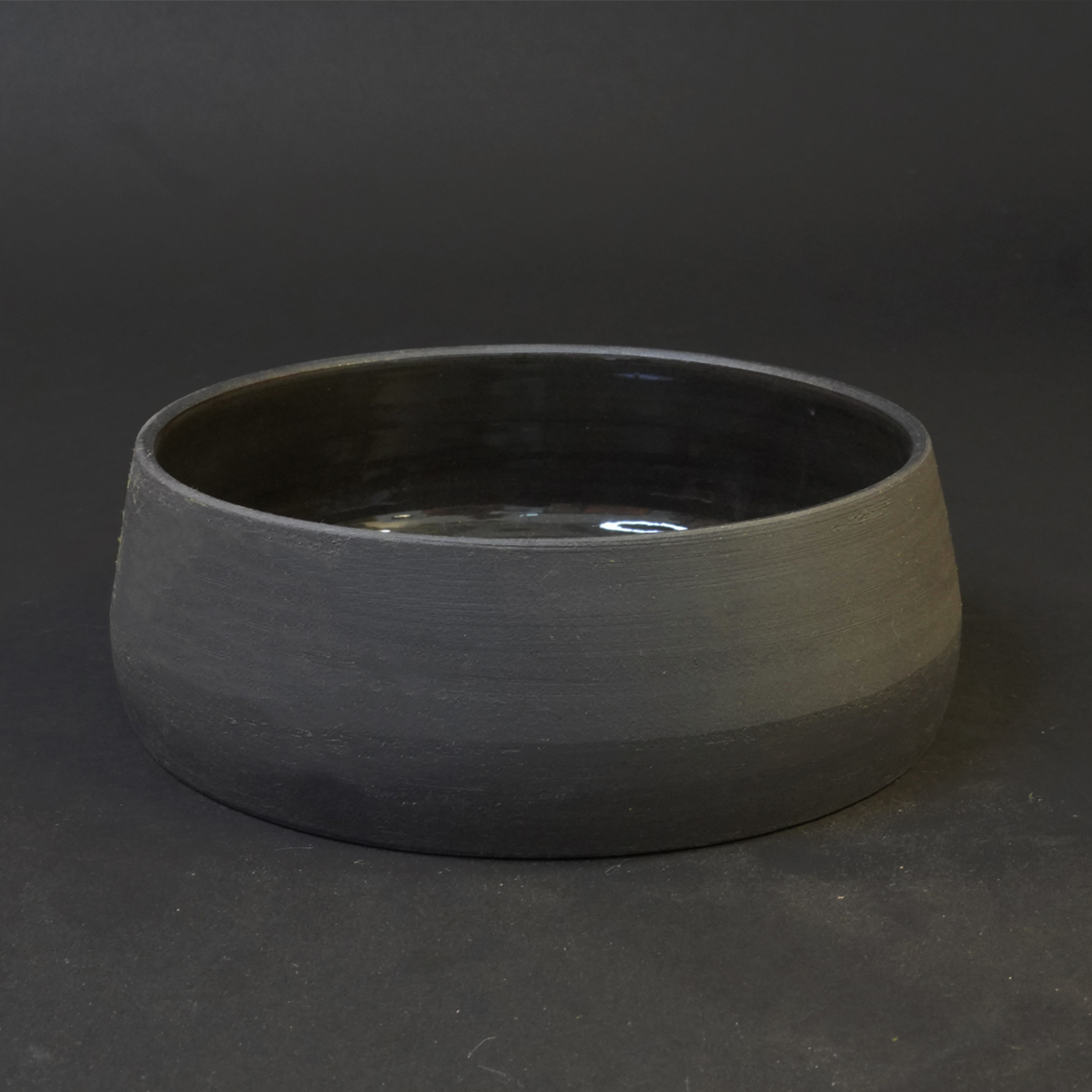 De eet- en drinkbak is gedraaid van Nigra klei en voorzien van een glazuur.