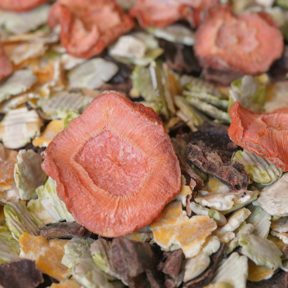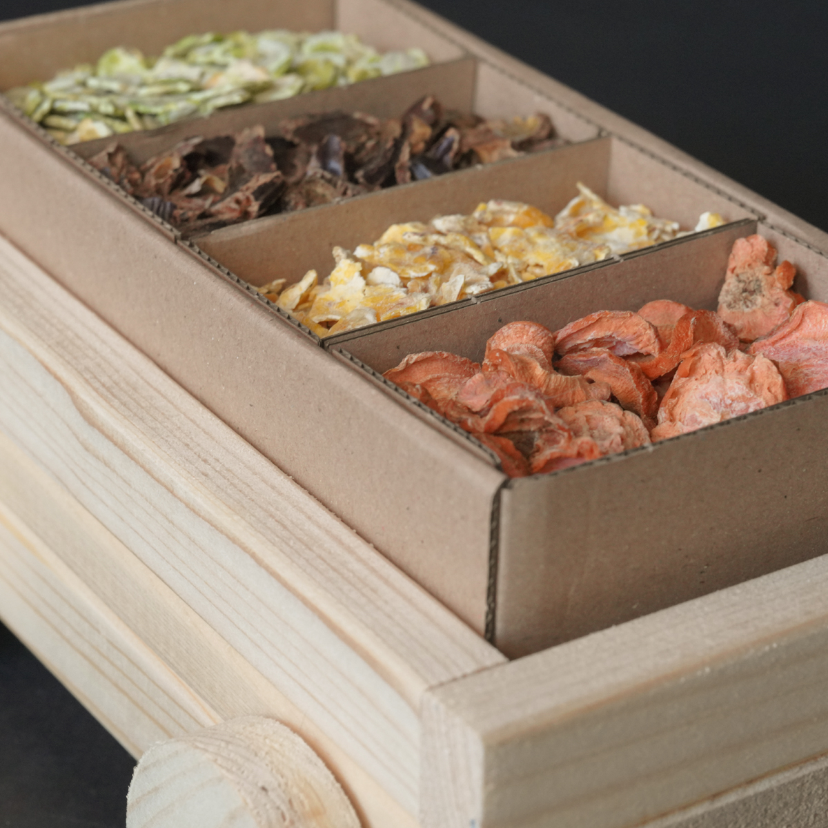 De Prime-editie is rijkelijk voor je gevuld met smakelijke snacks zoals johannesbrood, erwtenvlokken, maïsvlokken en wortelschijfjes.