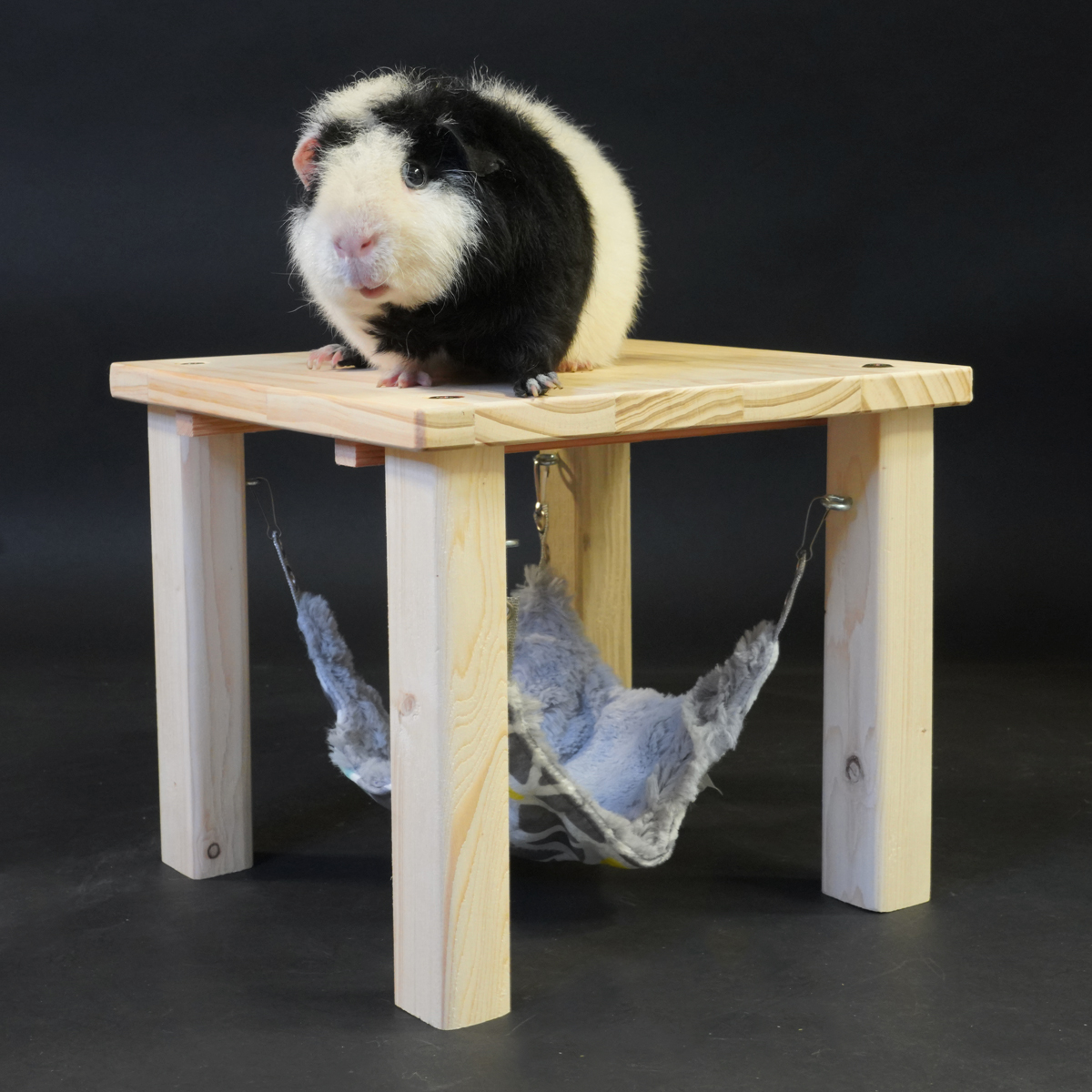 Het zachte vilten hangmatje nodigt uit om heerlijk in te ontspannen, terwijl jouw cavia ook bovenop het plateau kan zitten om alles goed in de gaten te houden.