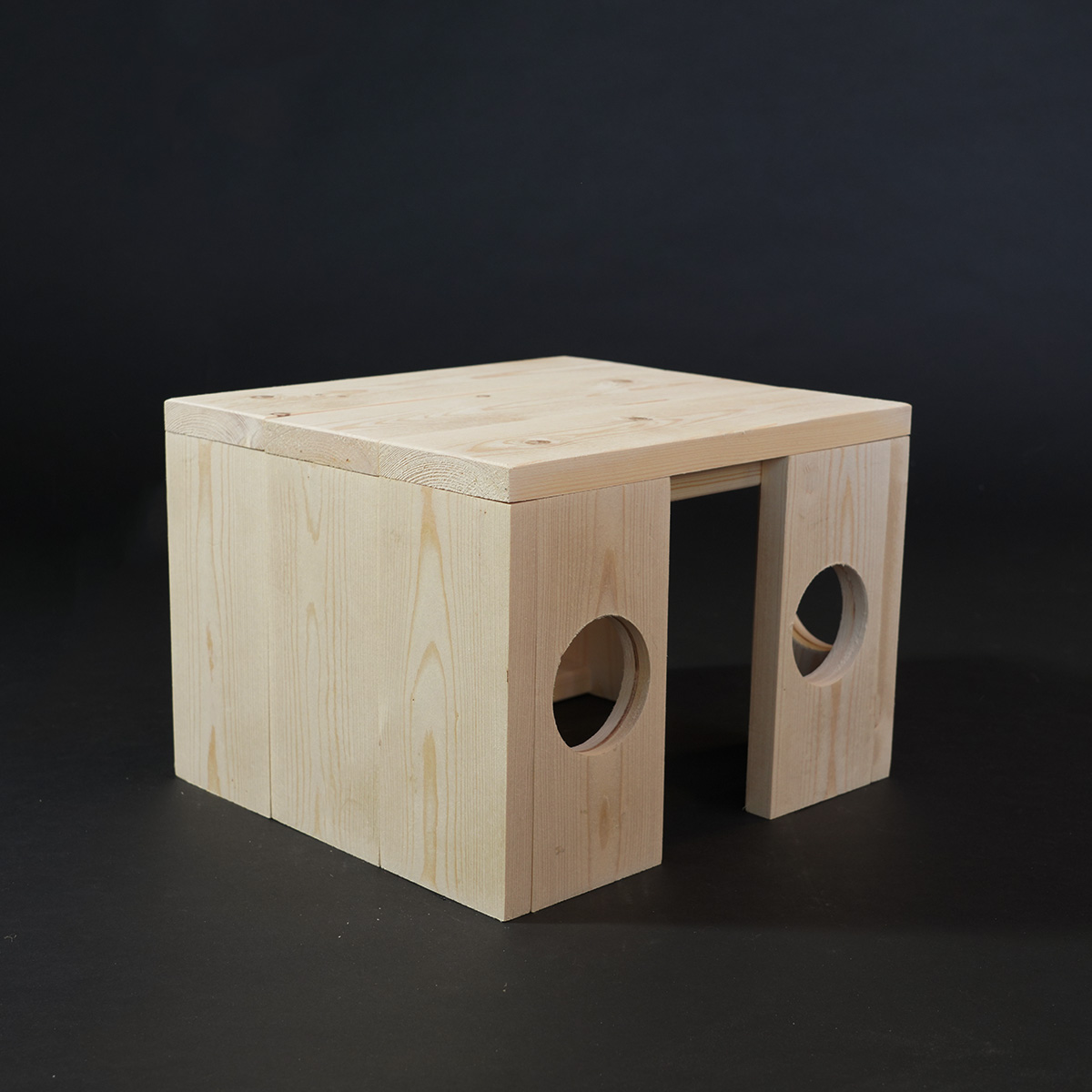 Schuilhuis Bragi is een handgemaakt houten schuilplek voor jouw cavia! Door het strakke, neutrale uiterlijk past deze mooie schuilplek perfect in het verblijf van jouw cavia. Dit schuilhuis heeft 2 openingen, waardoor veel cavia’s dit huis prettiger ervaren als een schuilplek met 1 opening. Het onbewerkte hout is veilig voor jouw knager.