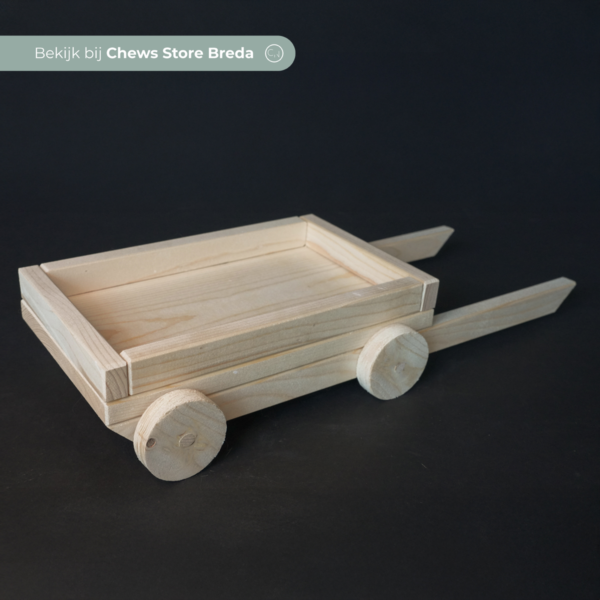 De snackwagen wordt met de hand gemaakt in onze eigen werkplaats. Elk item is daarmee uniek en er kan dus een kleine afwijking zijn. Er wordt gebruikt gemaakt van puur, onbehandeld vurenhout. Er zijn geen spijkers gebruikt en daarmee is de snackwagen helemaal veilig voor jouw cavia.