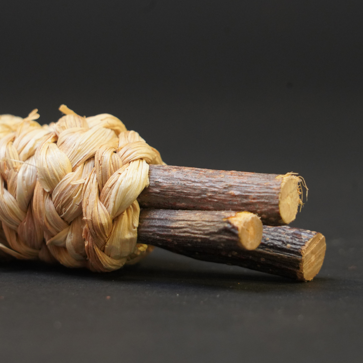 Knagen aan de Wooden Sticks Toy helpt op een natuurlijke manier bij het afslijten van de tanden én zorgt voor wat extra activiteit in het verblijf.