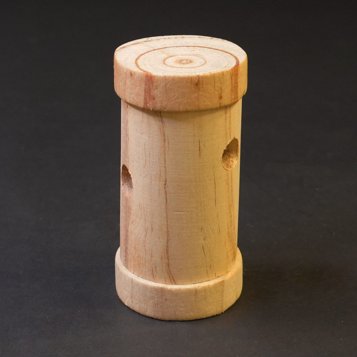 Door de houten snackrol te duwen of rollen, vallen de beloningen eruit via de kleine openingen.
